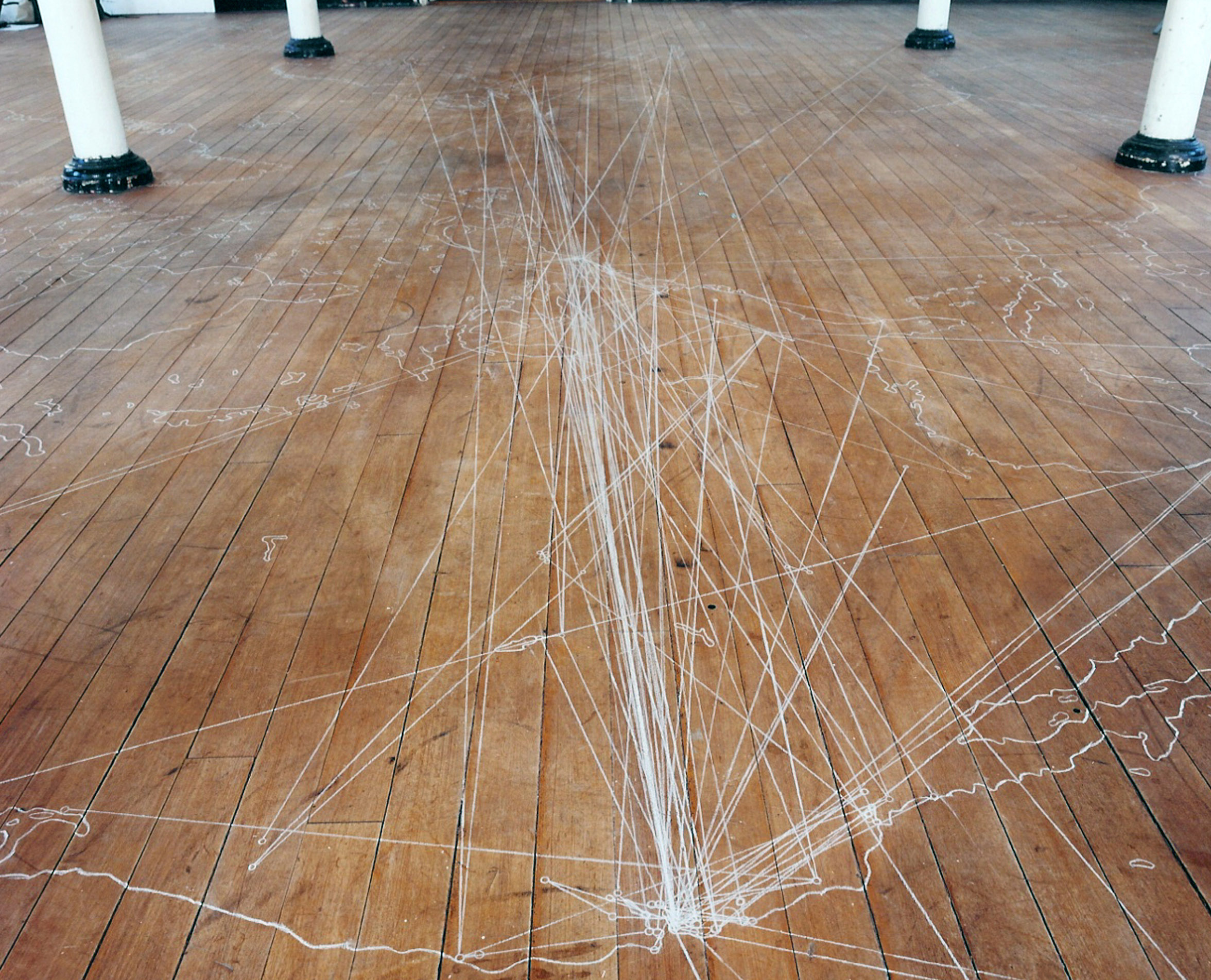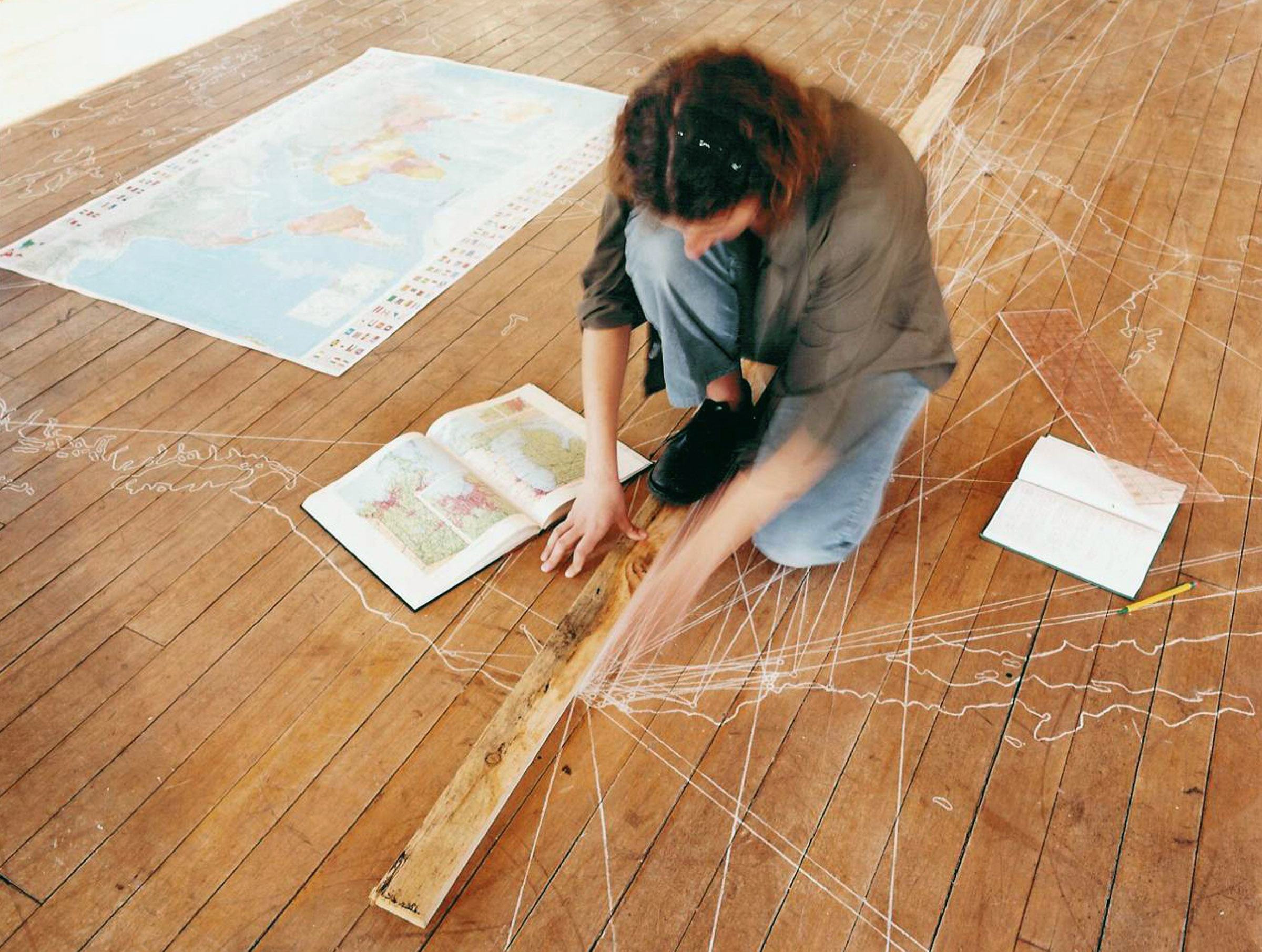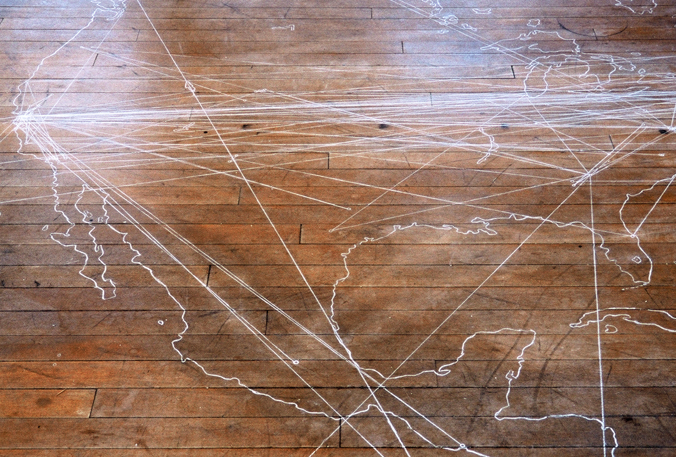 During my Project Space residency, I drew an 1800 square foot world map on the floor and asked participants to draw lines connecting all of the places they had lived as well as write in a logbook the reason for each move. The piece was a story of what produces change in people’s lives, exploring not the reasons we stay in one place, but the reasons why we move.