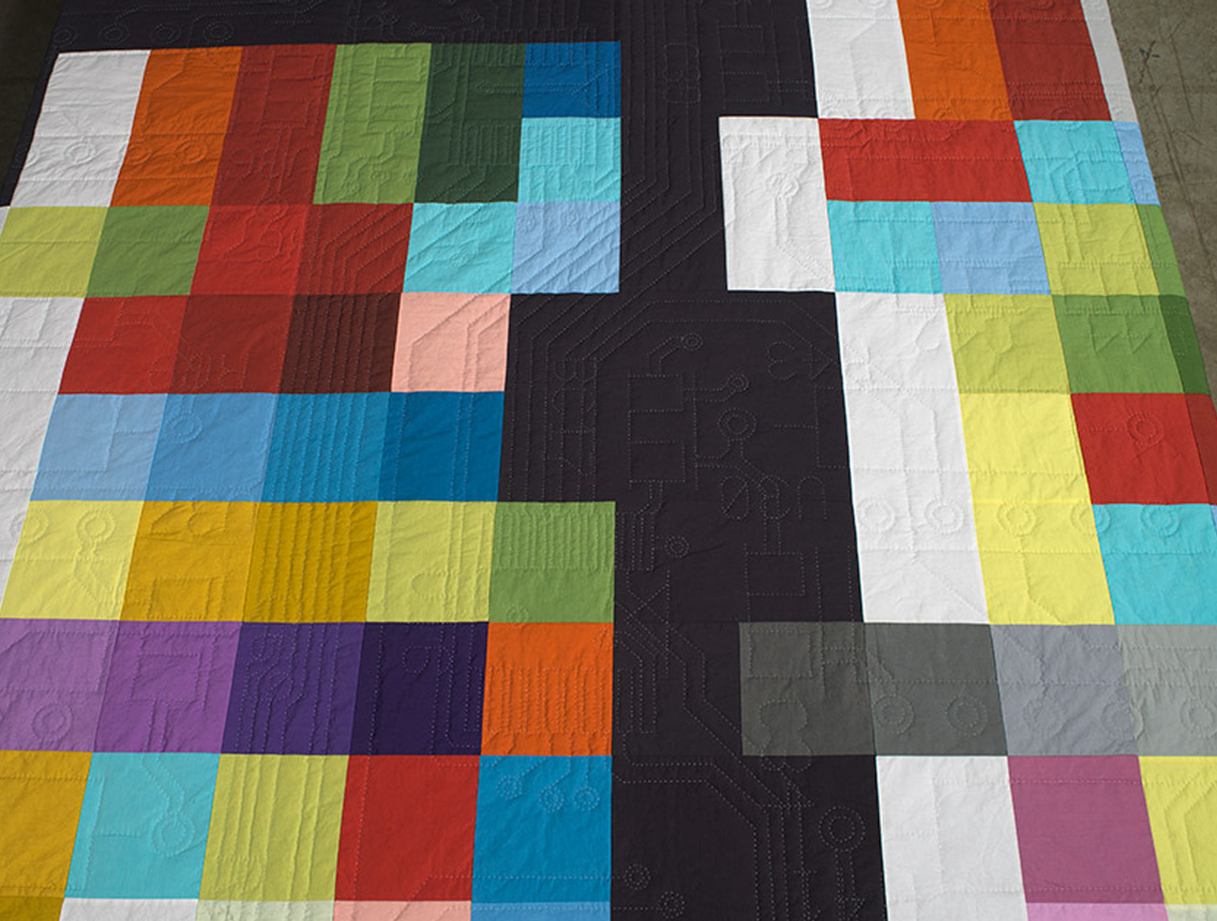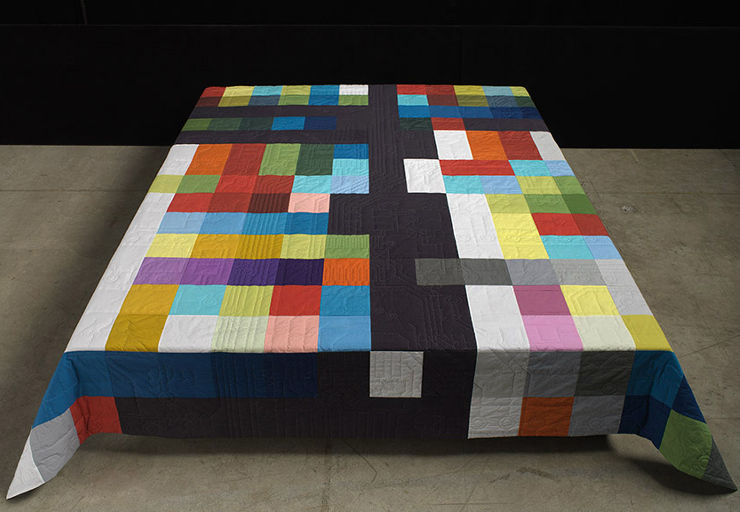 Arkanoid2001, hand-dyed, hand-stitched cotton, 80 x 60 x 15 in.