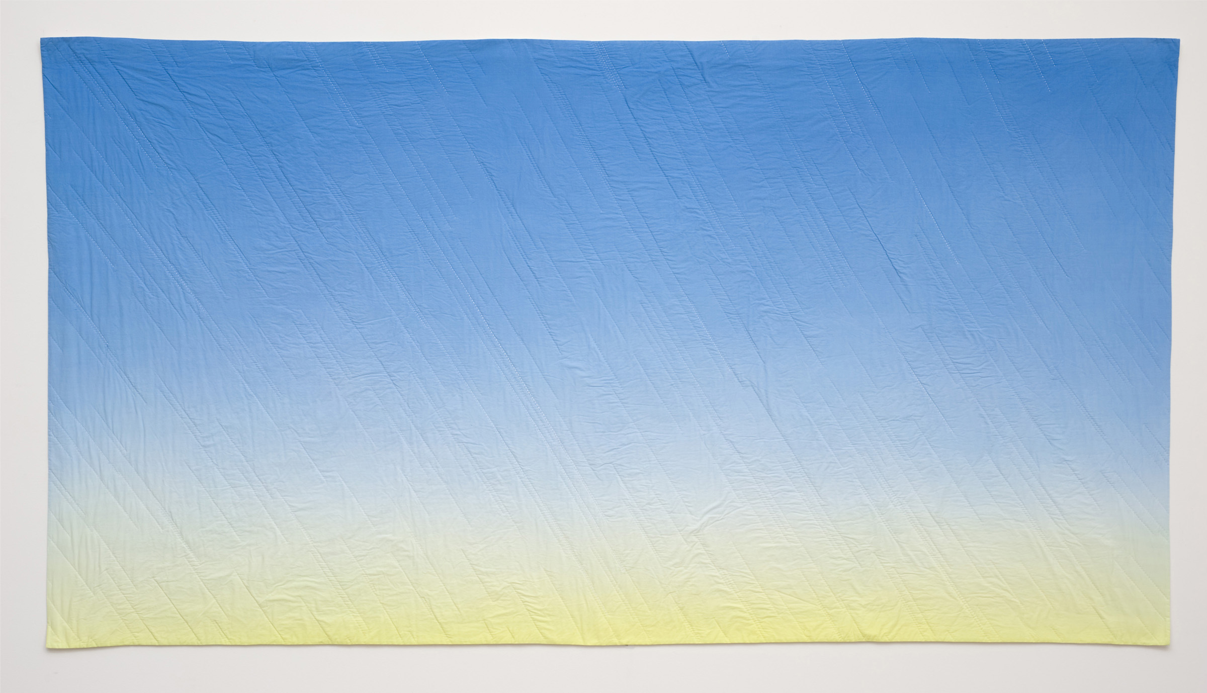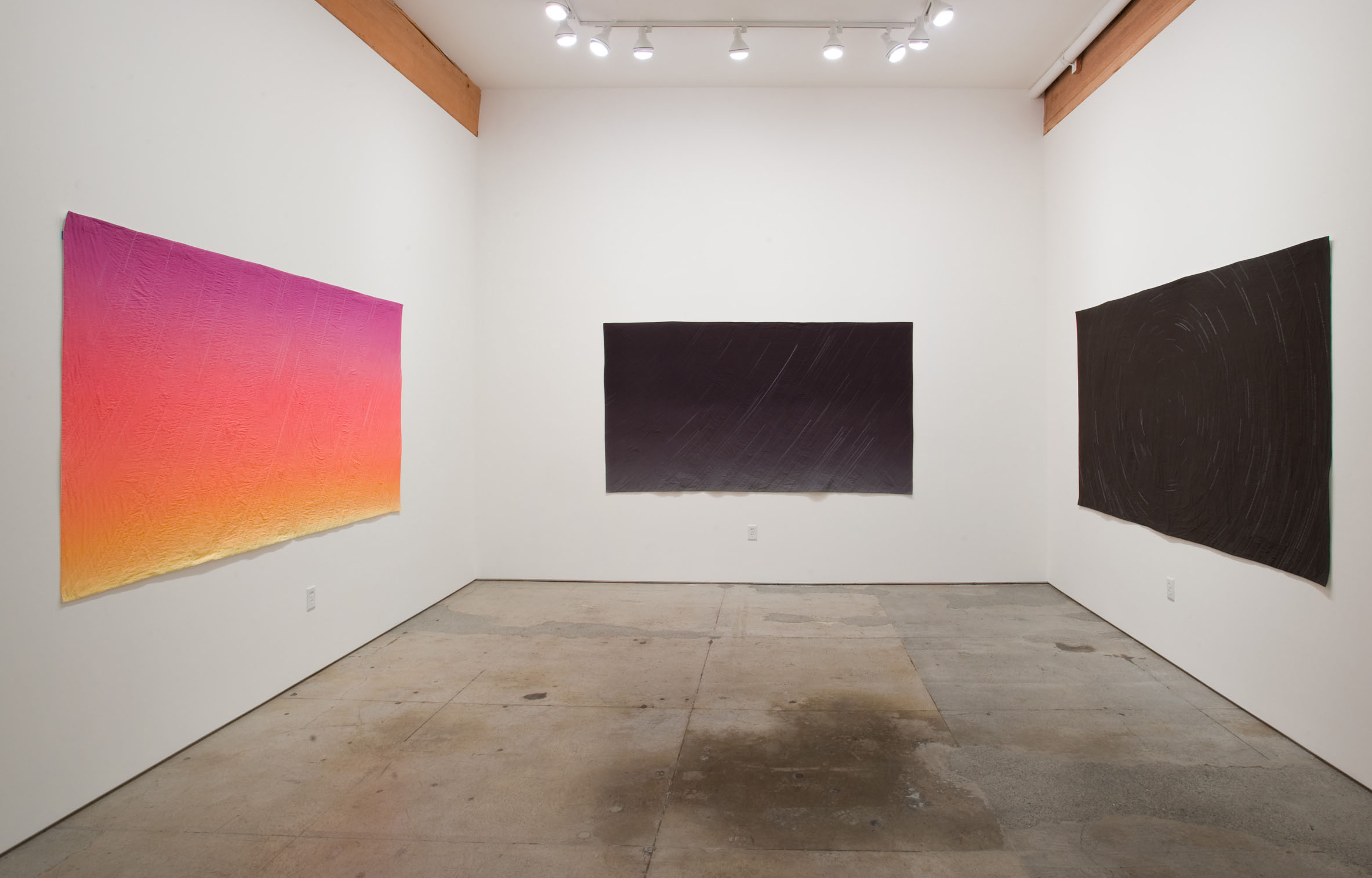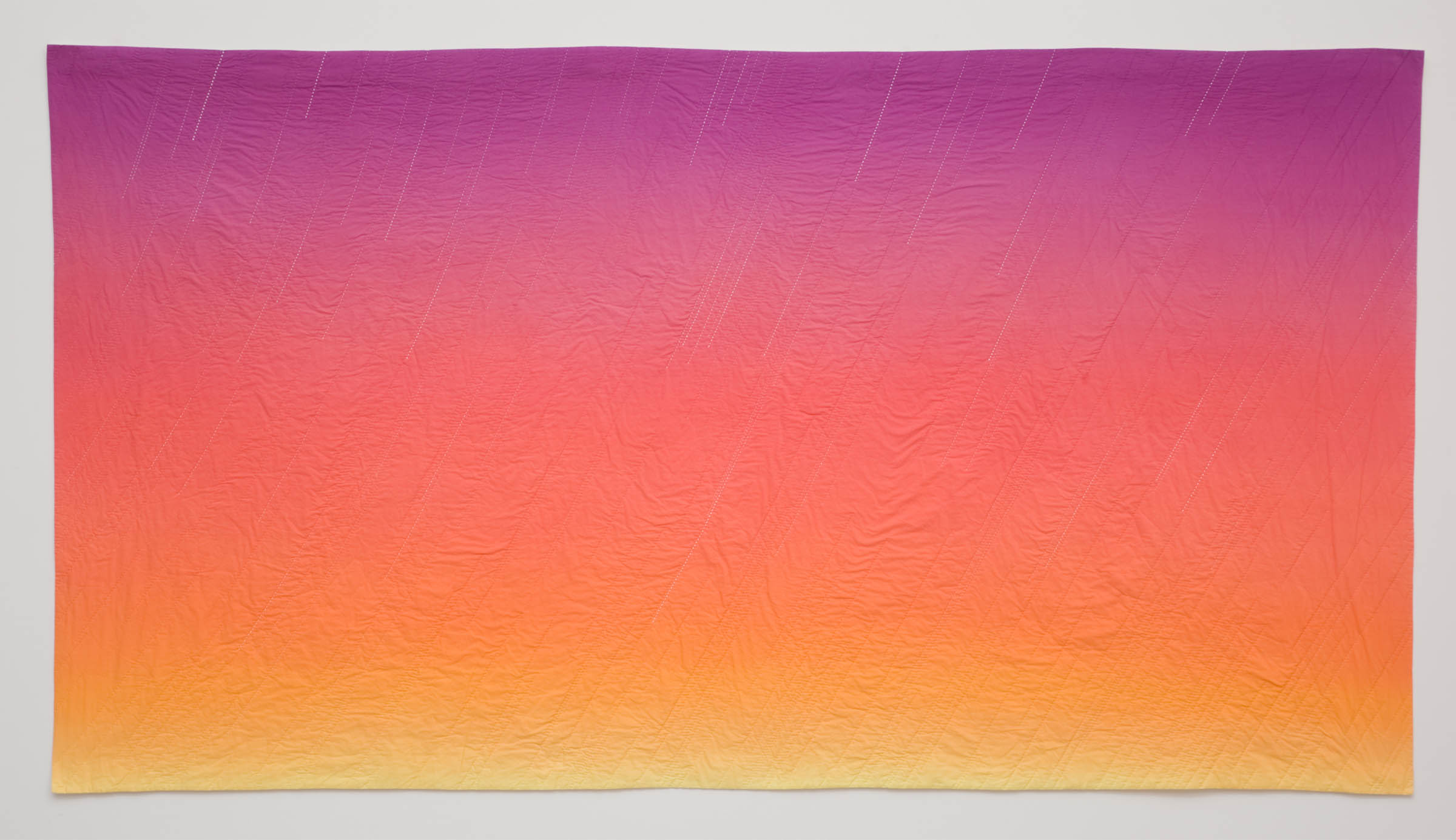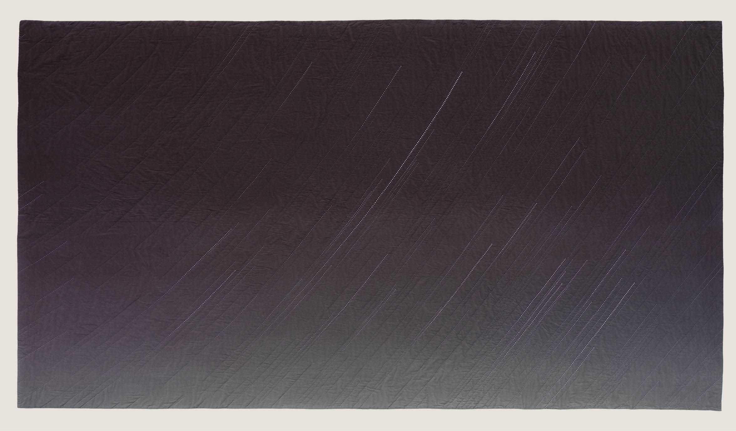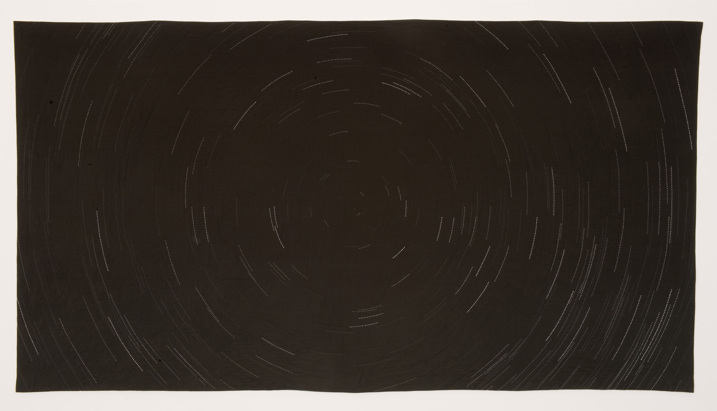 Using a computer program to calculate these historic vistas, I then sew the star patterns into painted, hand-dyed renderings of the night sky. Through the hand-sewing of these passages of time, I mirror my own contemplative act with the age-old existential act of stargazing.