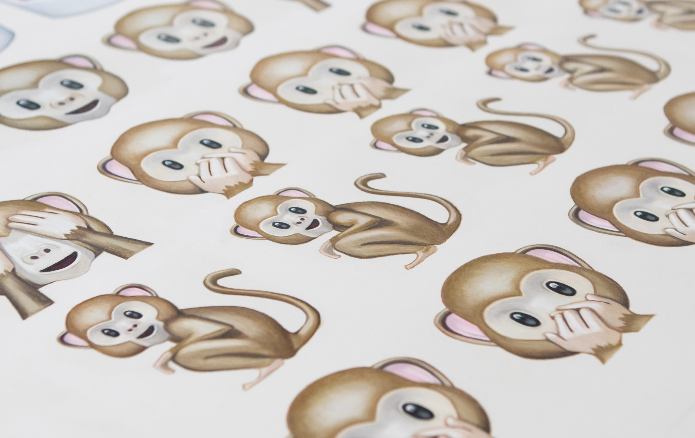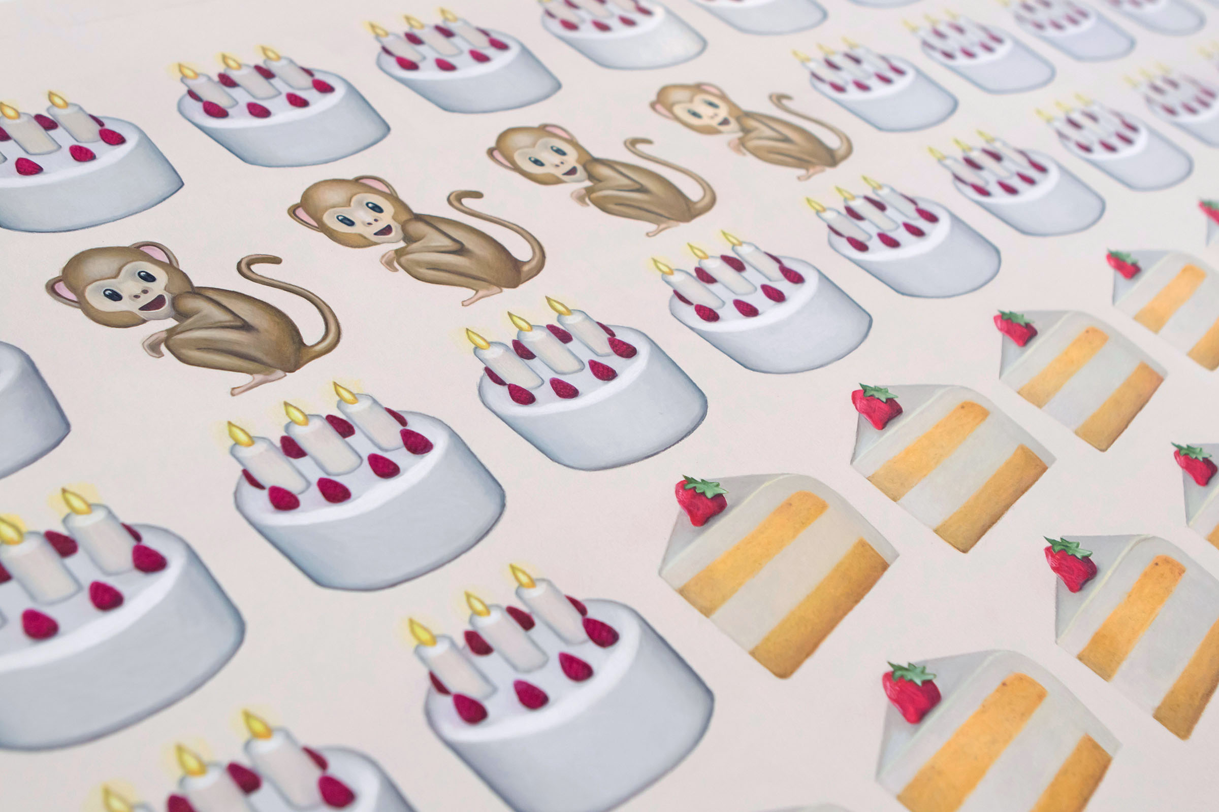Emojis and drawings seem worlds apart in tone and technique. Emojis are cartoonish stand-ins for feeling, fired off with a flash of the thumbs. Drawings are intimate, personal, pulling you in. My emoji drawings destabilize this polarity. They borrow equally from both sides: at once silly and earnest, superficial and specific, contrived and exquisite. From a distance my drawings click into place, almost as slick as the surface of our screens. Walk closer and the choices of the hand become evident; no repeated mark is the same. Emojis might be generic and collective, yet each time we hit send we make their language our own. What appear as offhand gestures, with close looking become heartfelt missives. Despite their immediacy, emojis have a latency that my drawings resolve.